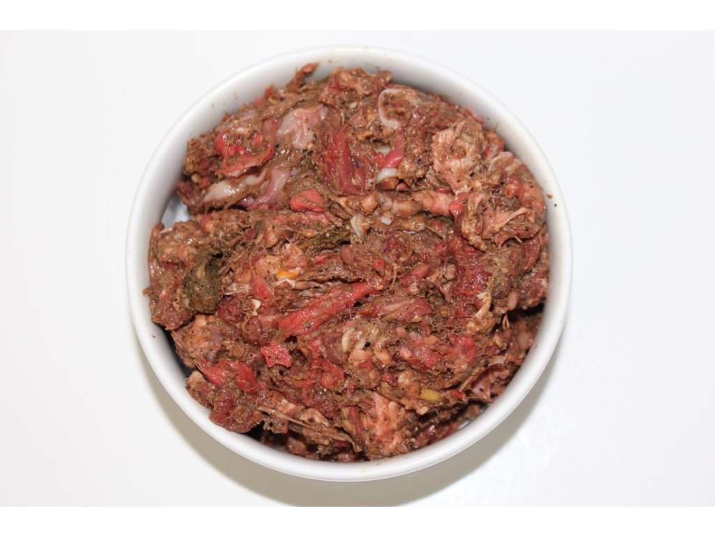 | složení: | vepř svalovina, krůtí skelet, hov. plíce, neprané dršťky |
